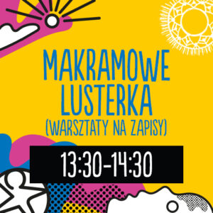 Makrama to wyjątkowa technika ozdobnego zaplatania sznurków, za pomocą której możesz stworzyć piękne dekoracje w boho stylu. Podczas warsztatu poznasz podstawowe sploty makramy, by zrobić oprawę lustra, którą zamontujemy na lusterku. Stworzona przez Ciebie dekoracja świetnie odnajdzie się nie tylko na balkonie/tarasie czy też w ogrodzie, ale również we wnętrzu domu dodając mu wakacyjnego nastroju.