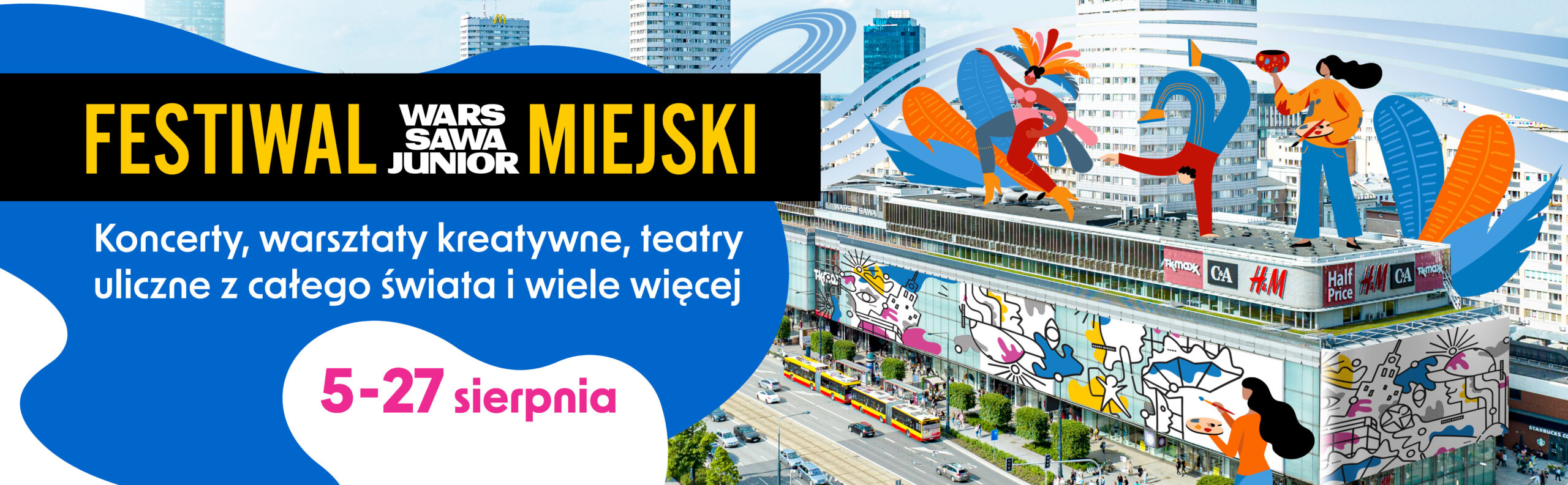 Przygotujcie się na niezapomniane chwile pełne muzyki, tańca, kreatywności i artystycznych emocji w samym centrum! W tym roku Wars Sawa Junior zaprasza na wyjątkowe koncerty, pokazy samby, grę na bębnach, warsztaty kreatywne i kulinarne, dancingi międzypokoleniowe i spotkanie z ulicznymi teatrami z całego świata!